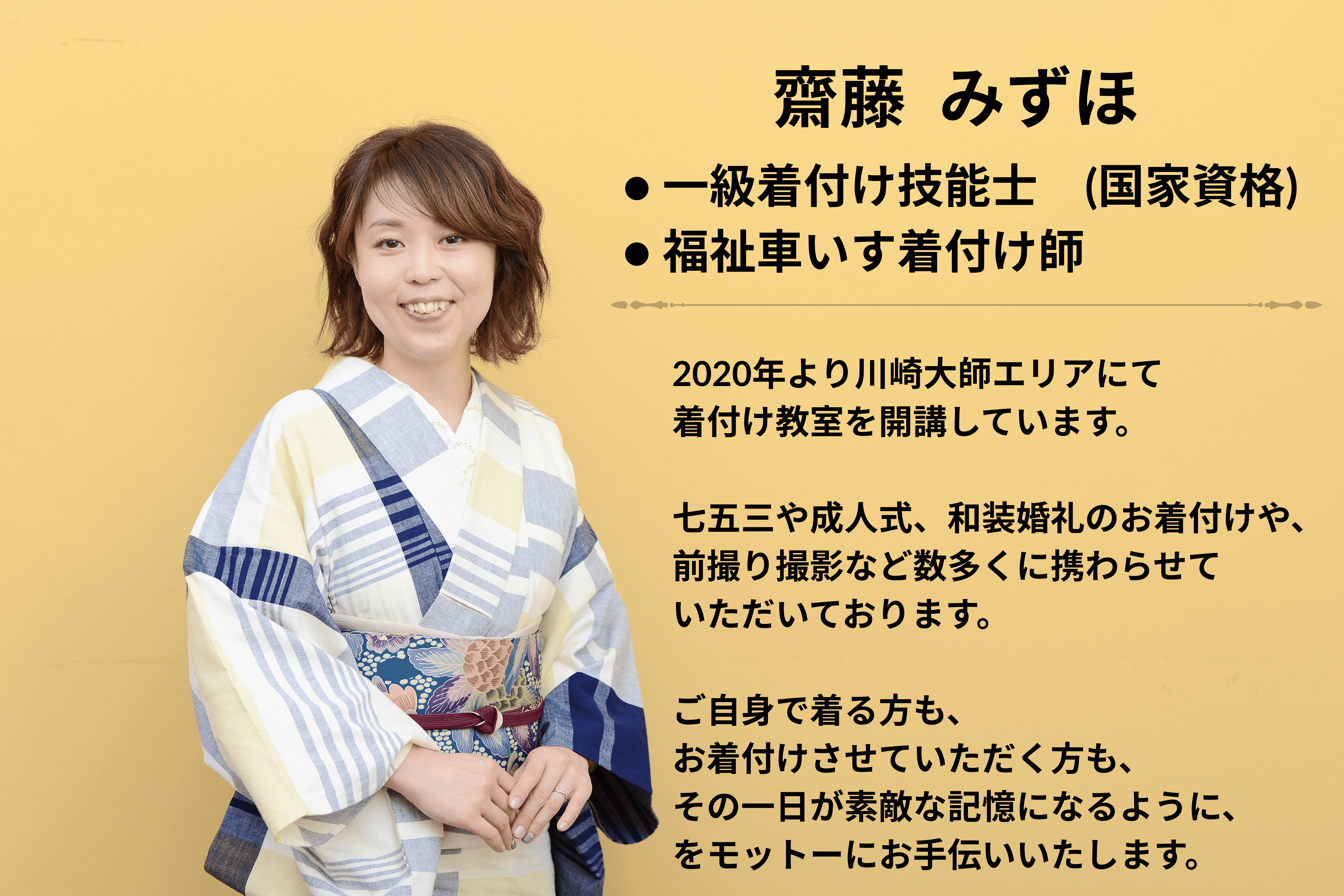 「あなたがこの先、一人で着物を着続けられるようになるまでしっかり導くこと」を教室理念としています。